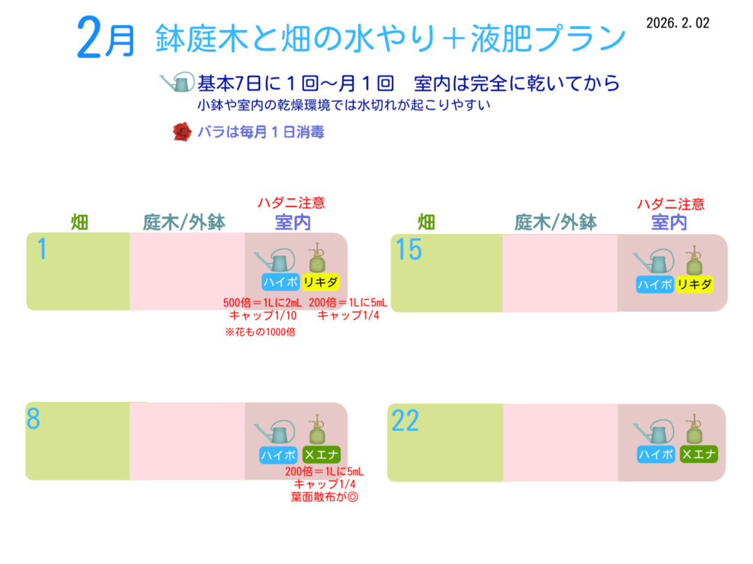 26年2月の水やり計画
