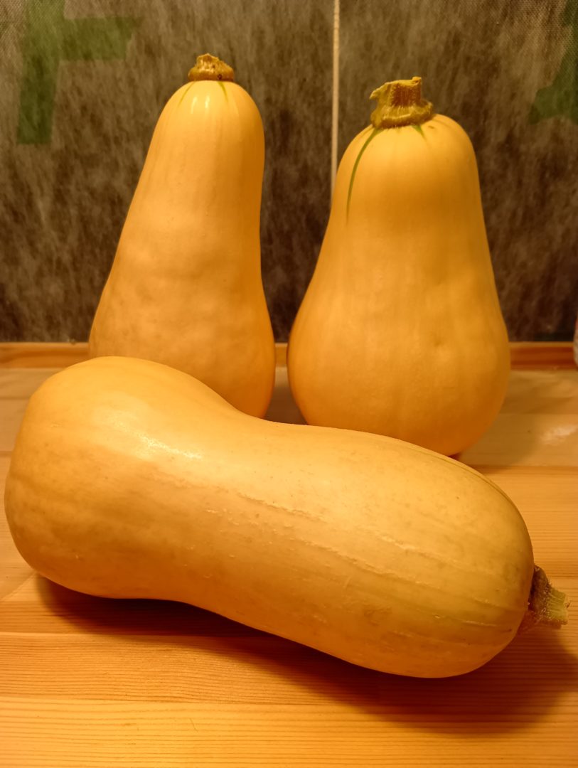 急に何の写真かと思われたかもしれませんが、バターナッツかぼちゃと申します。品種名は、トキタ種苗の「クレマズッカ」。畑はしばらくぶりだったおかげもあって、”ゴツイの”が取れました。今回一番大きいので1200g。