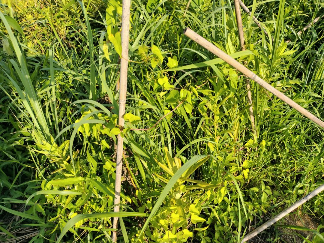 つくね芋の隣に、別品種のヤマトイモ?も成長中。こちらも同じ境遇だったのですが、まだ、地上部は枯れていないので、もうしばらく様子見です。
