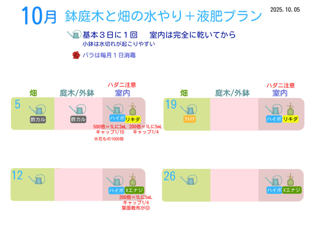 25年10月の水やり計画