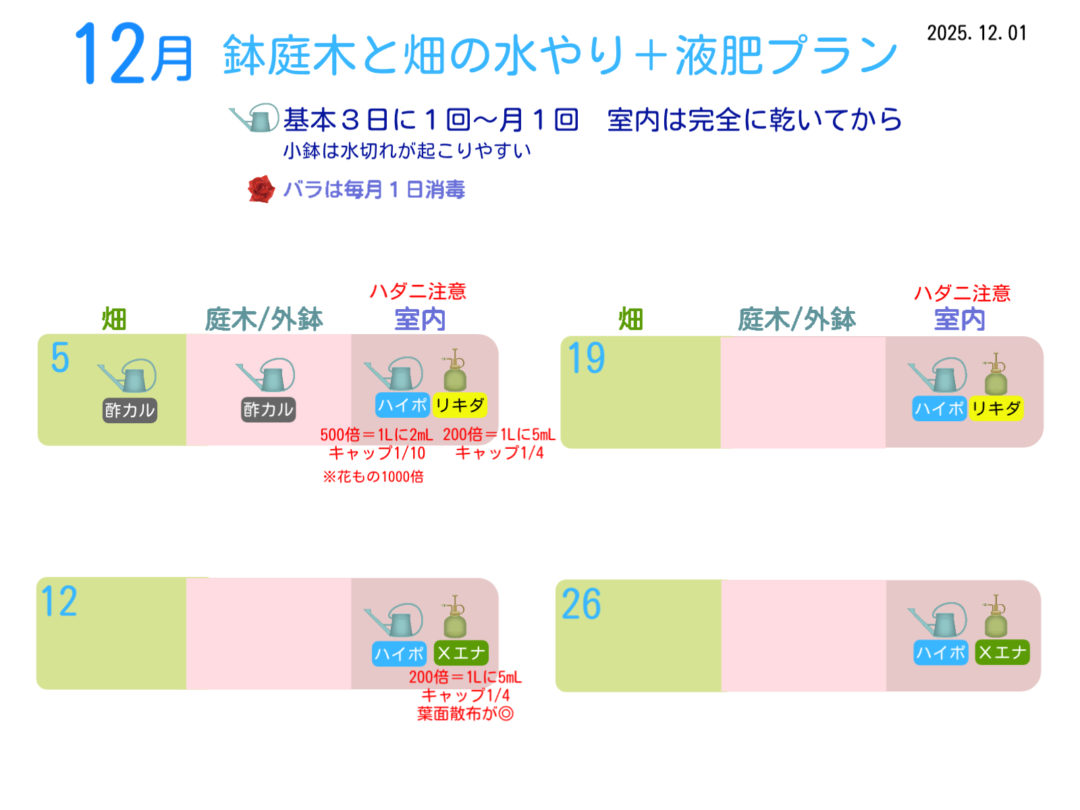 25年12月の水やり計画